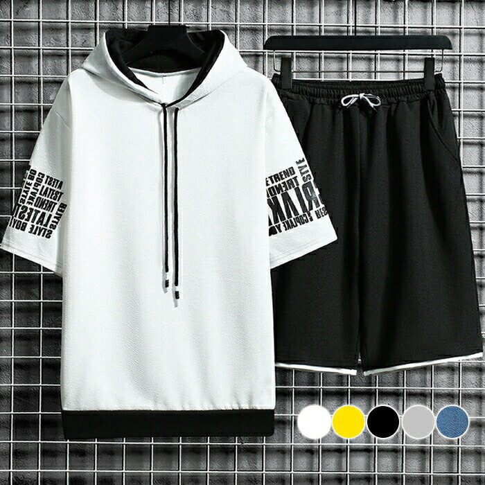 半袖のパーカーとハーフ パンツのジャージ 上下 セットアップの登場です。