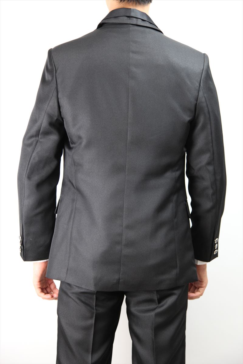 重厚感あふれるデザインにエレガントな細身シルエット!タキシードブラック、ジャケット・パンツ・蝶ネクタイ・カマーバンドの嬉しい4点セット。二重襟タイプ(軽量)タイプ!