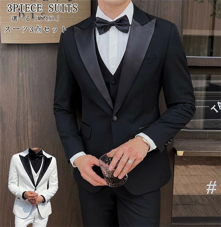 メンズスーツ スリーピース タキシード 紳士服 礼服 メンズ 結婚式 二次会 フォーマル ビジネススーツ リクルートスーツ 通勤 オ