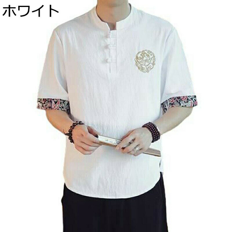 唐装 チャイナ服 メンズ 半袖 チャイナ風 トップス チャイナボタン ポケット付き カジュアル ゆったり おしゃれ ヴィンテージ 通気性 ビジネス 夏服 寿披露宴 デイリー 父の日
