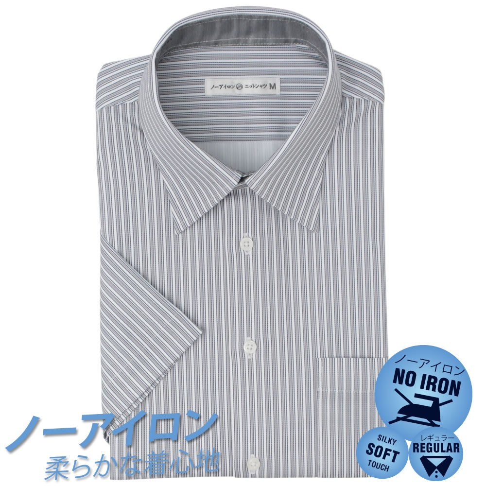 半袖ワイシャツ 形態安定 消臭 グレー マイターカラー レギュラーフィット 裏前立て メンズ Yシャツ 2506CL