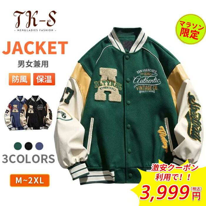 スタジャン メンズ スタジアムジャンパー ジャケット ジャンパー パッチワーク 秋 刺繍 男女兼用